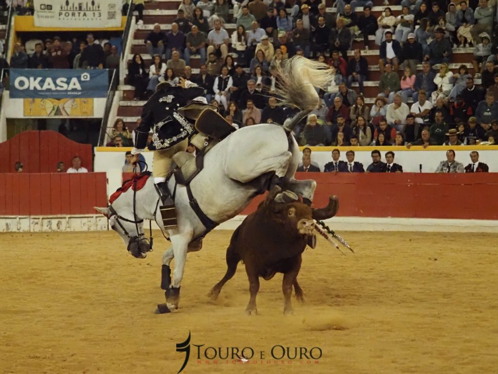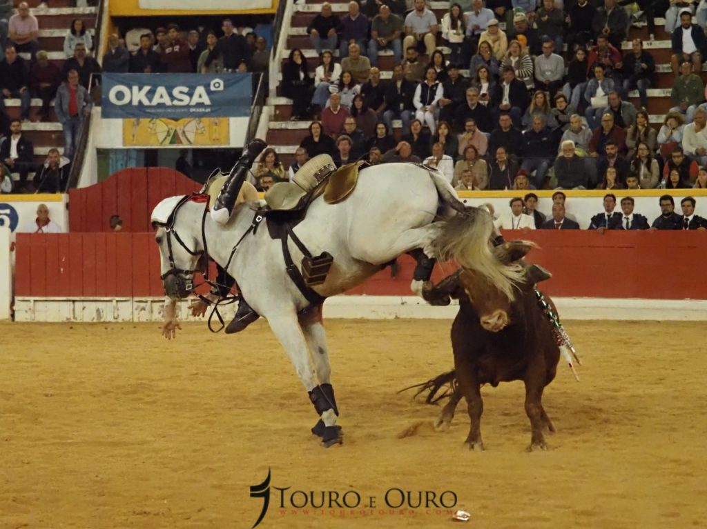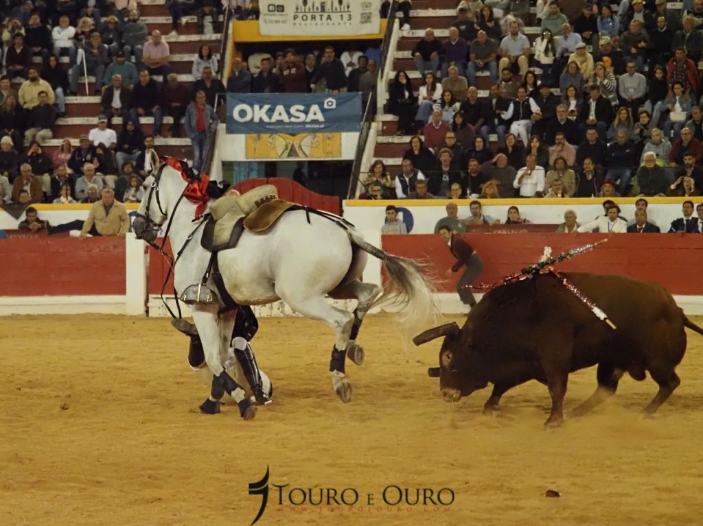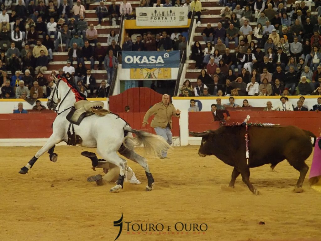 O touro da ganadaria Conde de Murça adiantou-se à montada, e apanhou-a de frente, fazendo com que o cavaleiro acabasse por cair na arena, sem que no entanto ambos tenham sofrido qualquer ferimento.
