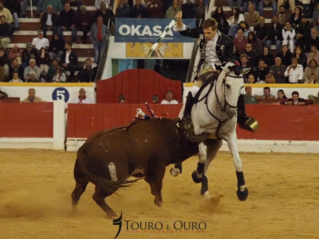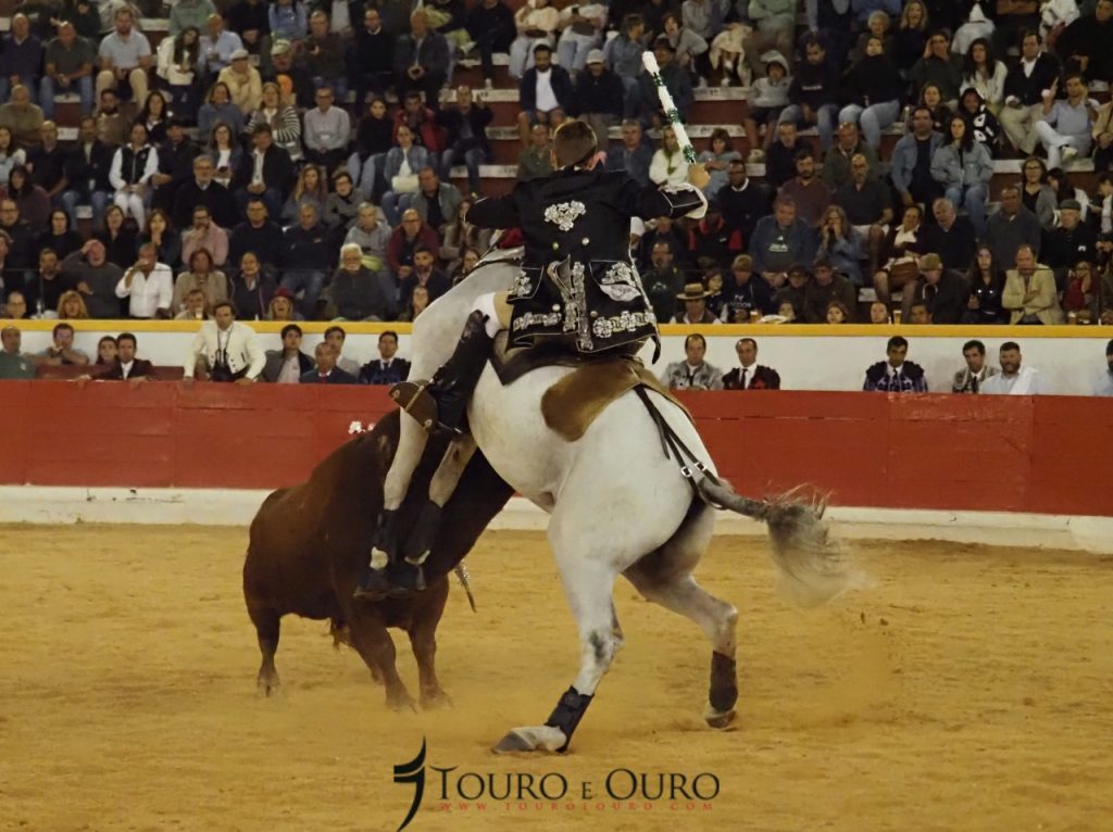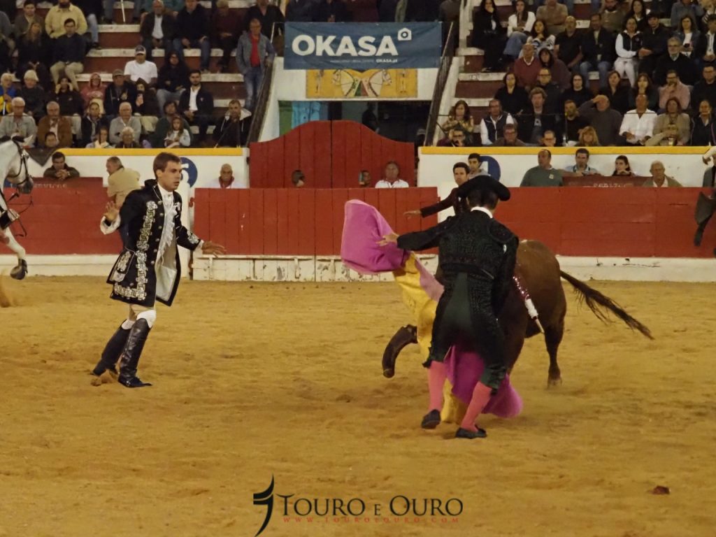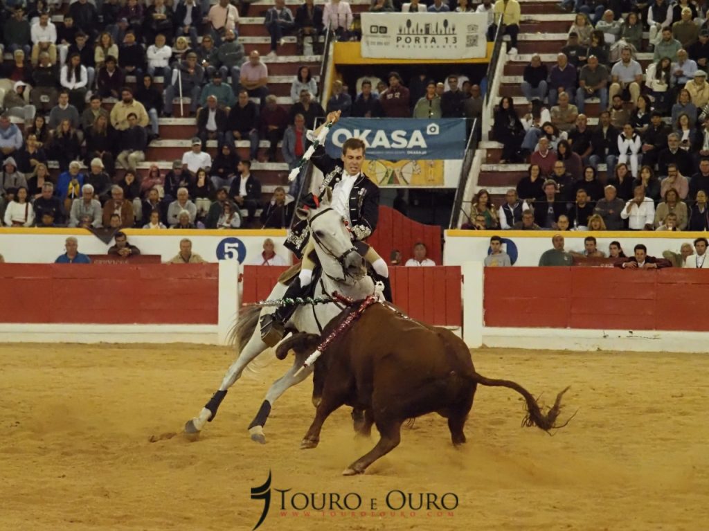 O touro da ganadaria Conde de Murça adiantou-se à montada, e apanhou-a de frente, fazendo com que o cavaleiro acabasse por cair na arena, sem que no entanto ambos tenham sofrido qualquer ferimento.