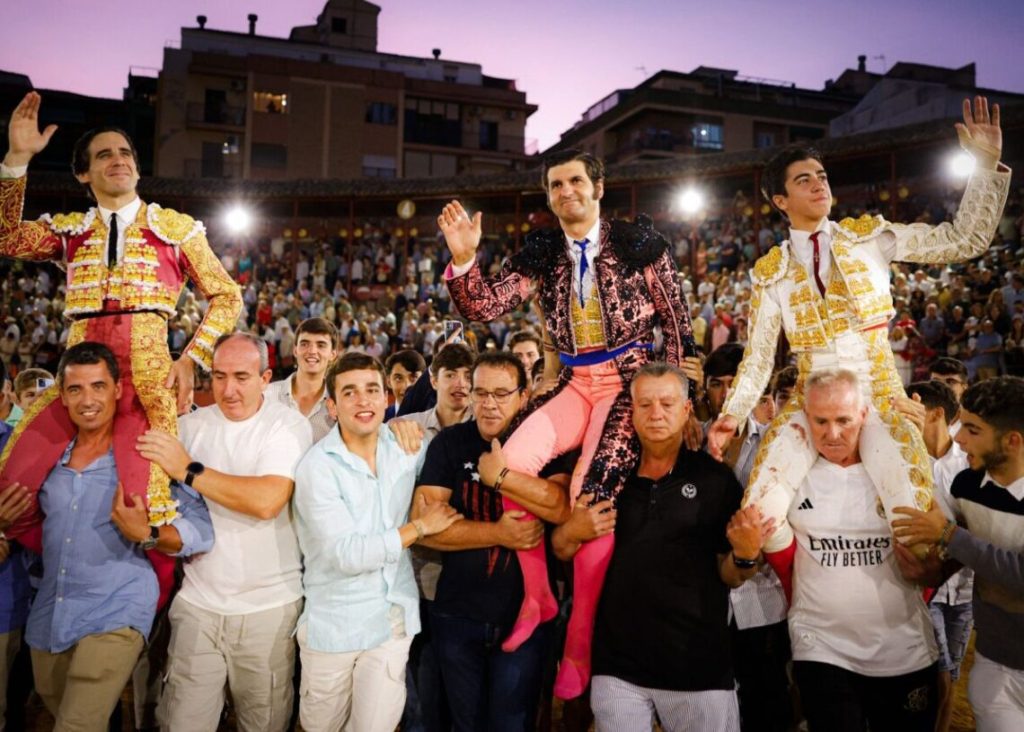 Todos os intervenientes saíram a ombros, depois da lide e morte de touros da ganadaria de Juan Pedro Domecq e Jandilla, perante uma praça cheia.