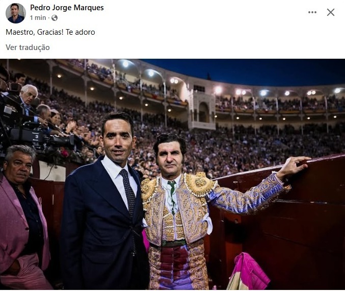 Multiplicam-se as reações nas redes sociais ao corte de coleta de Morante de La Puebla, esta tarde, em Las Ventas, Madrid… Mas esta, cuja foto publicamos, foi a primeira, a do seu último apoderado e quiçá, a do seu melhor amigo.