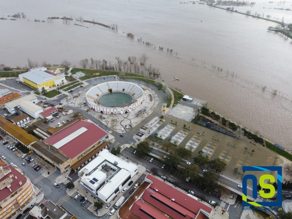 A Monumental de Coruche não escapou e ficou “cheia” com a água do rio Sorraia.
