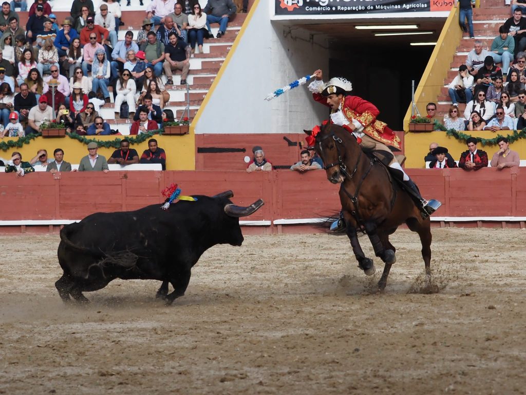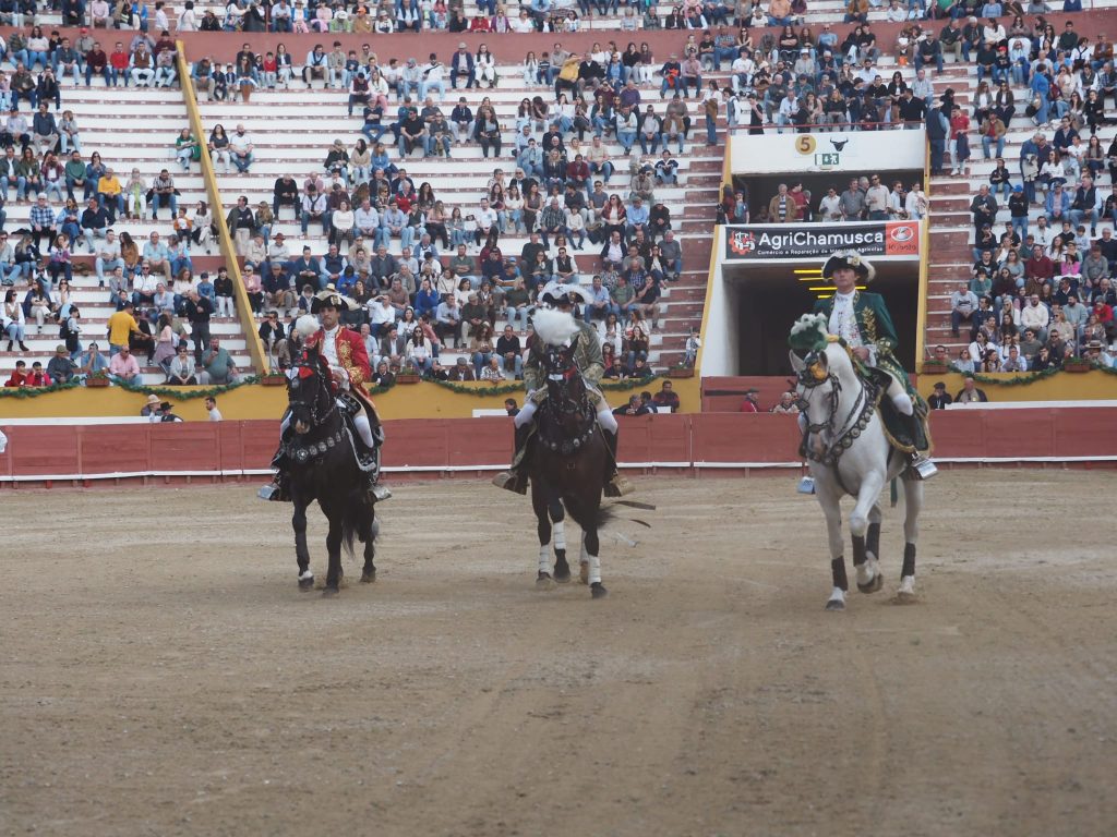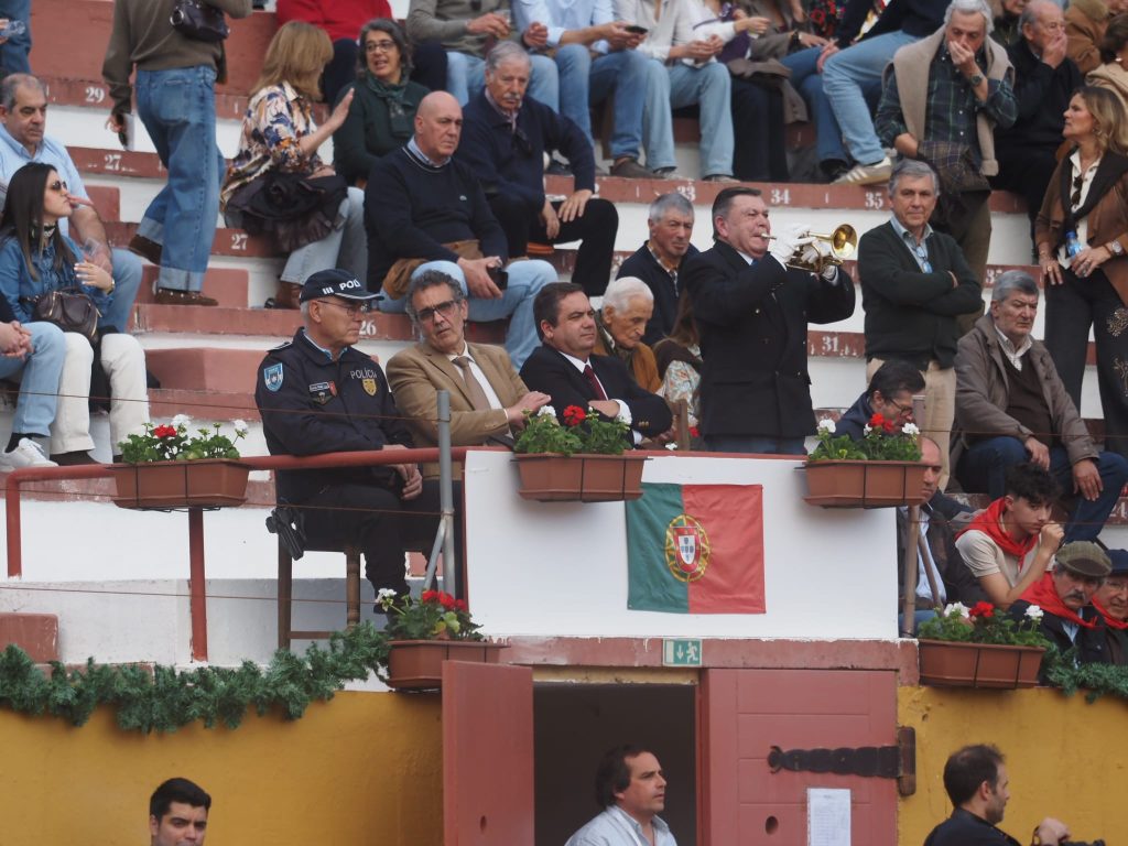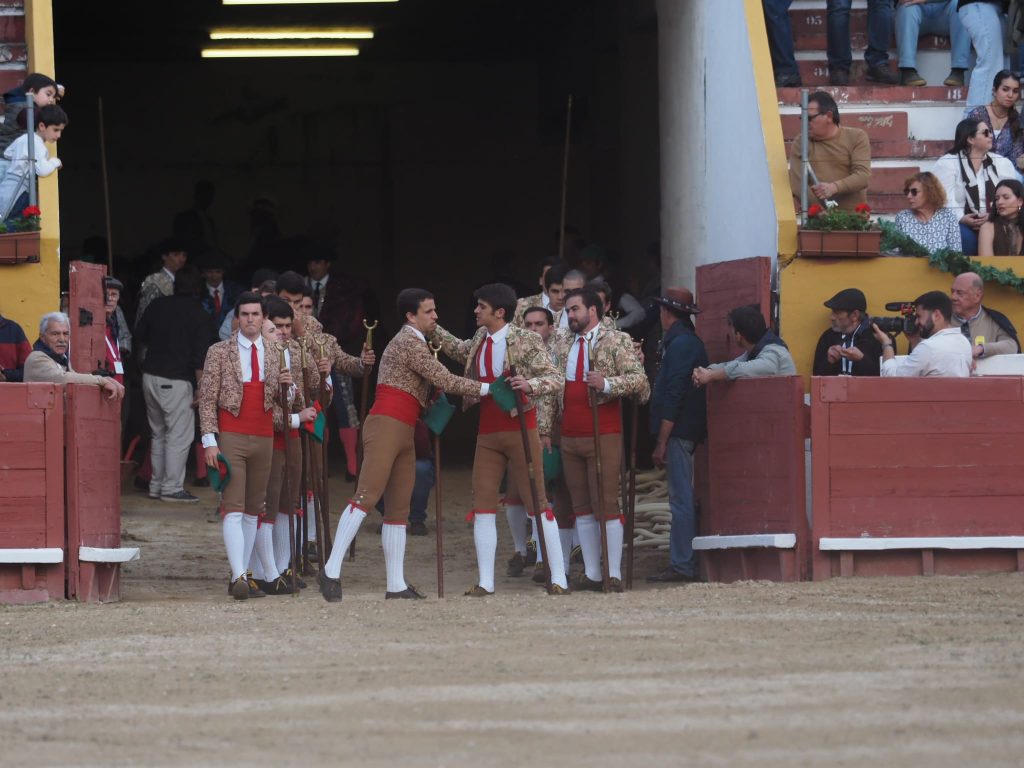 As cortesias já se fizeram, juntando na arena os cavaleiros João Moura Júnior, João Salgueiro da Costa e António Telles filho. Perfilados estiveram também os forcados dos grupos de Santarém e Aposento da Moita.