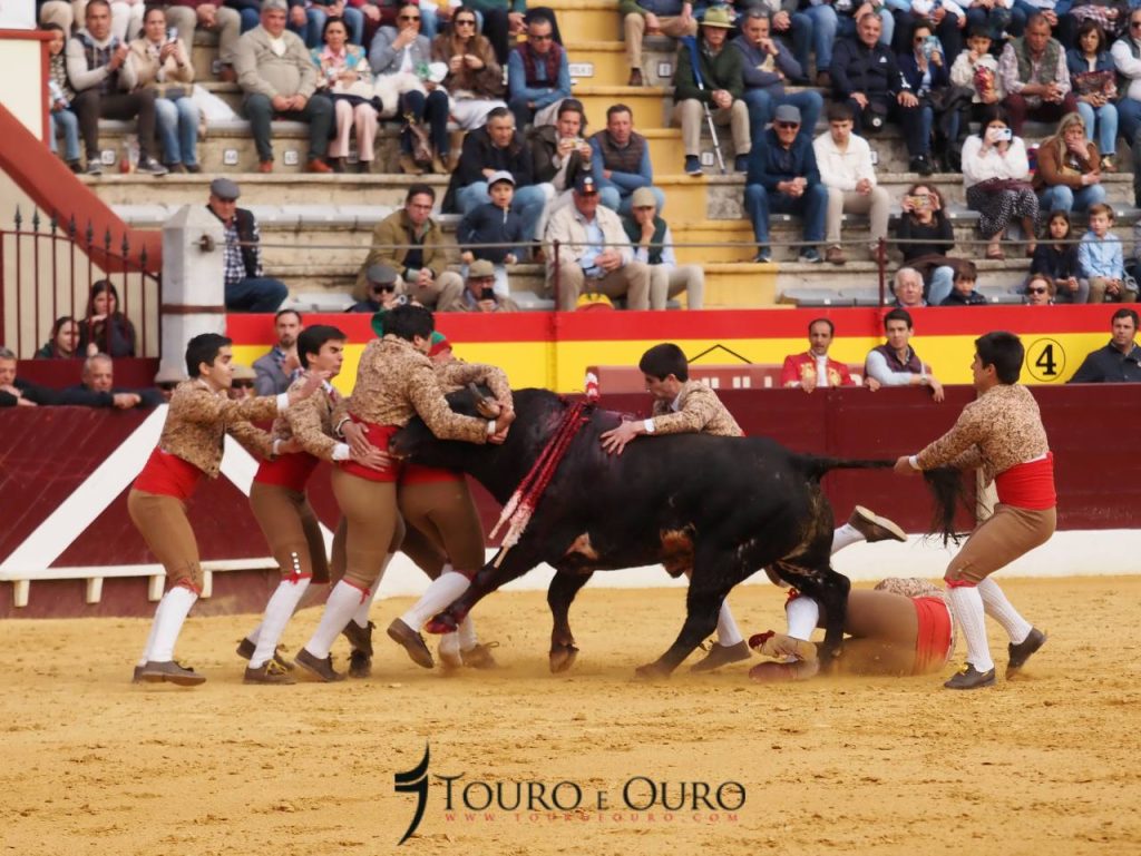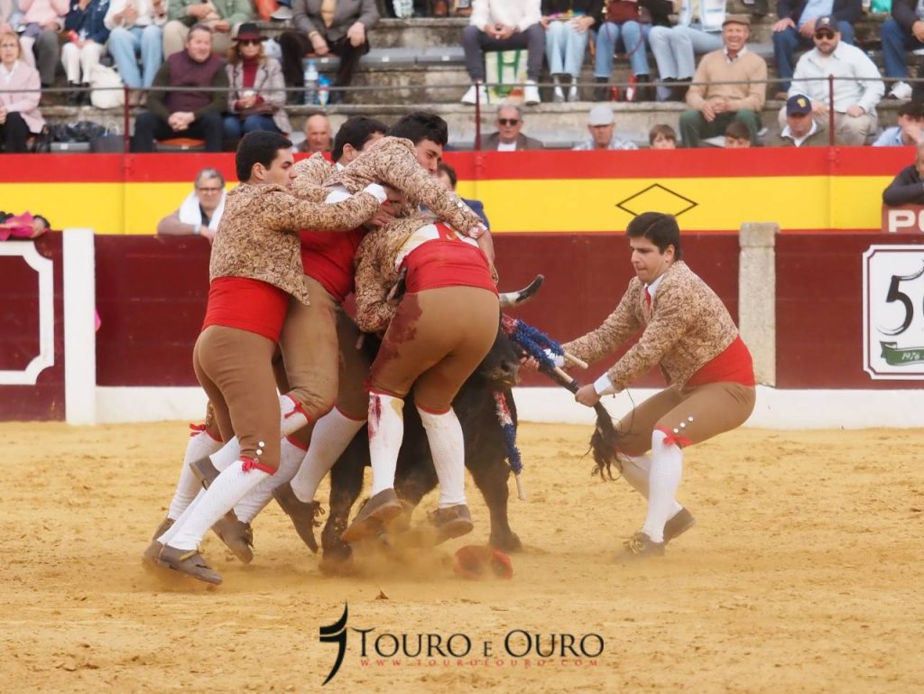 As pegas da tarde, porque as houve para regozijo da afición espanhola, foram asseguradas pelos Grupos de Forcados Amadores de Santarém e São Manços.