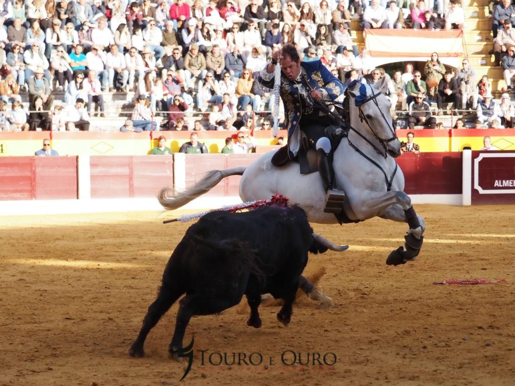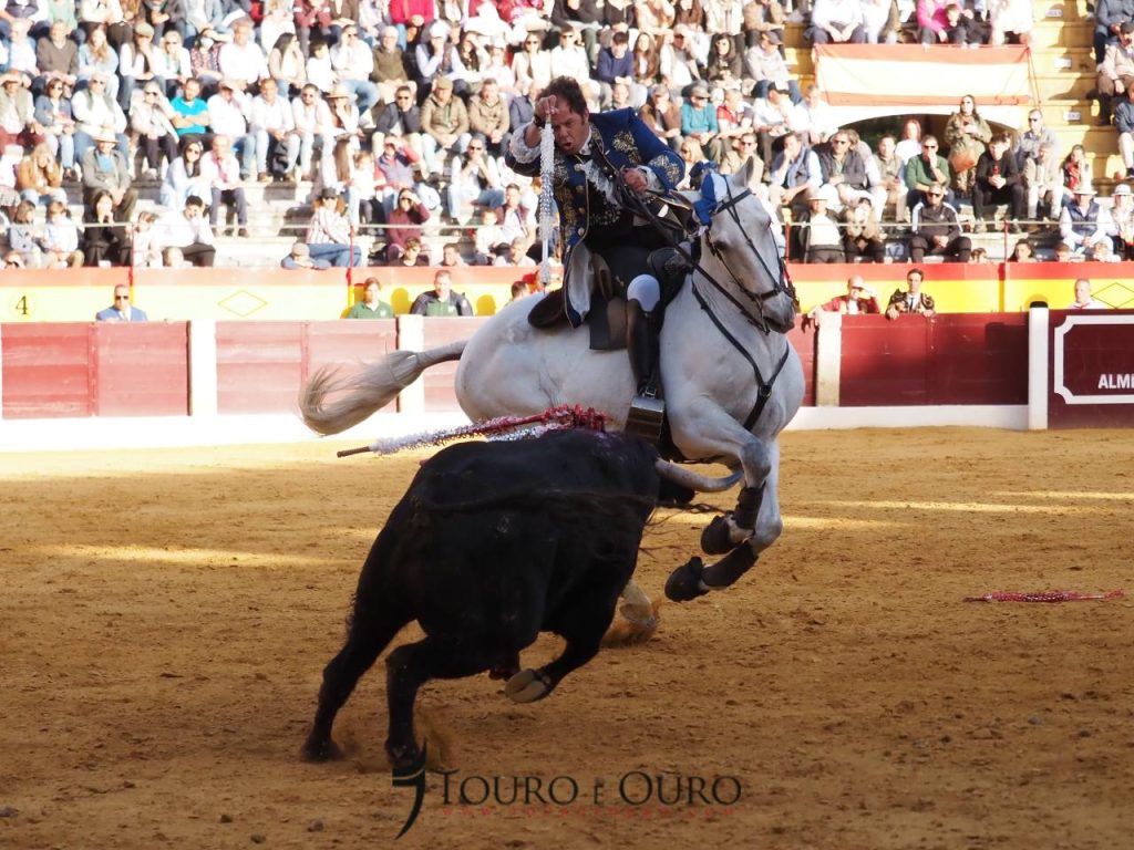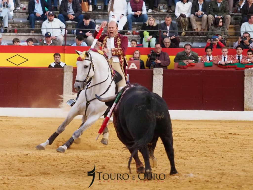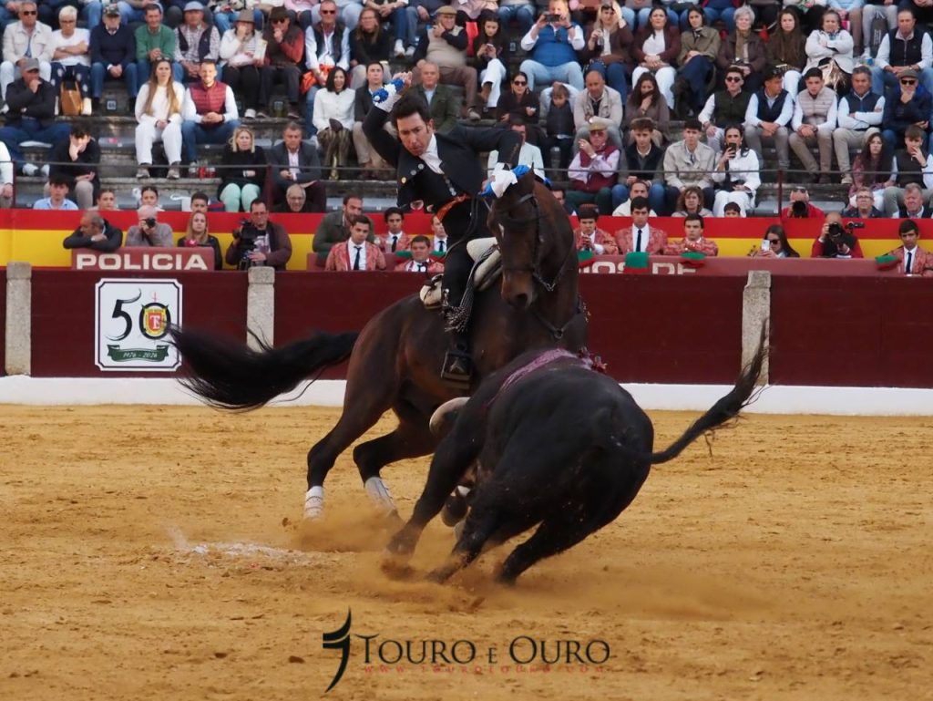 As hostilidades foram inauguradas com a presença do já veterano Sérgio Galán, bem de início ao fim. Dono de uma doma clássica, com apontamentos de modernidade, Galán recebeu bem o oponente, mantendo ganas de triunfo, deixando com garbo e qualidade a ferragem da ordem. Terminou com dois palmitos e um par de bandarilhas a duas mãos, de boa nota e estocada efetiva.