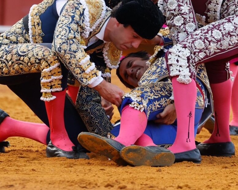 O diestro de La Puebla del Río, foi colhido com cornada no glúteo e pisoteado pelo toiro da ganadaria de Hermanos García Jiménez, sendo de imediato transportado à enfermaria do tauródromo sevilhano.