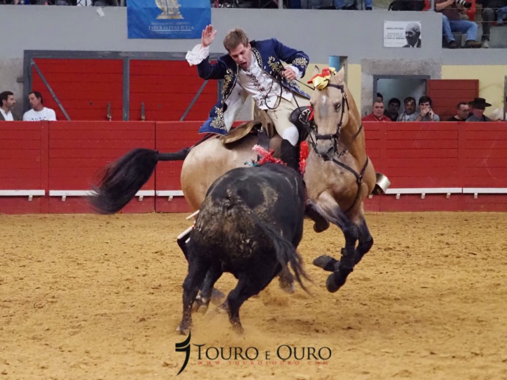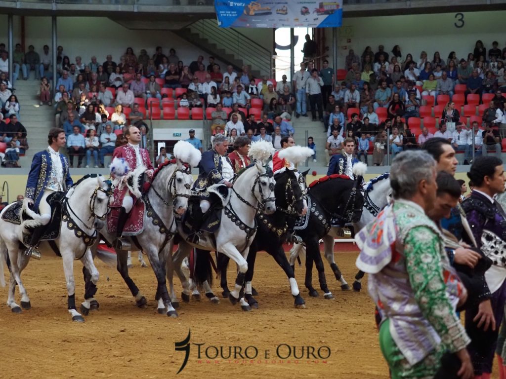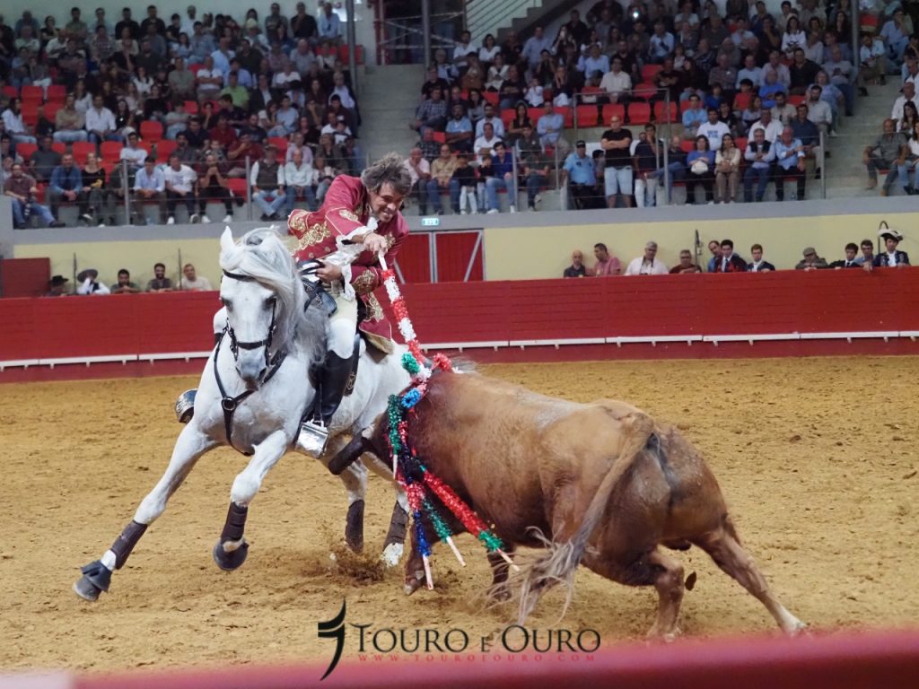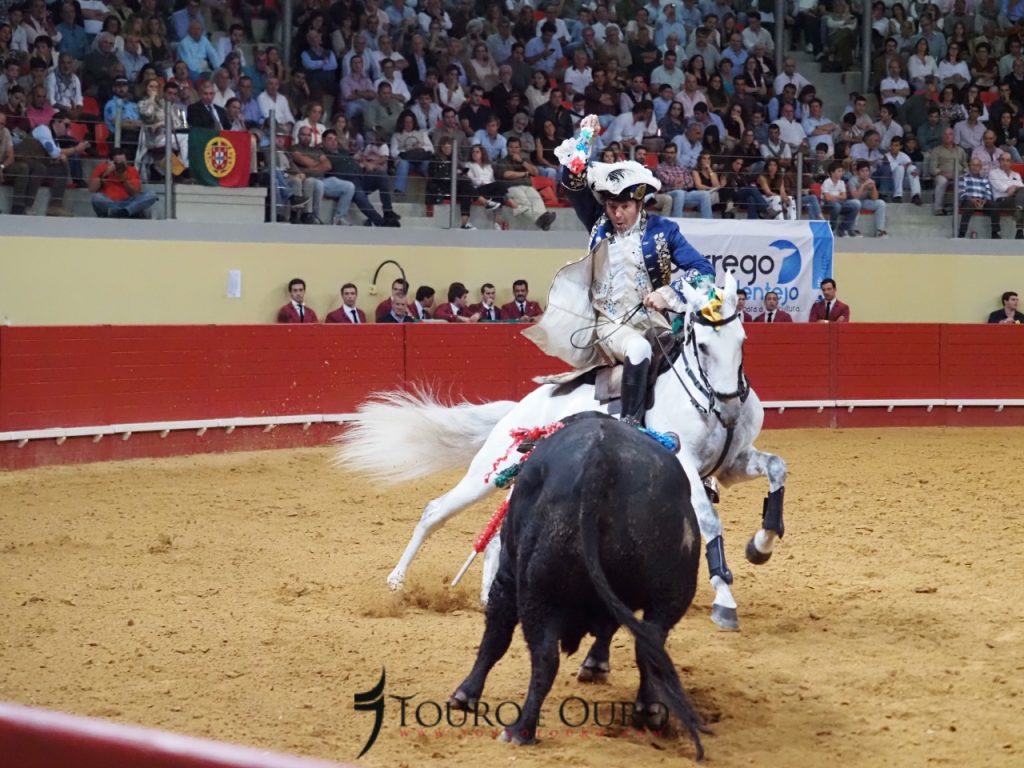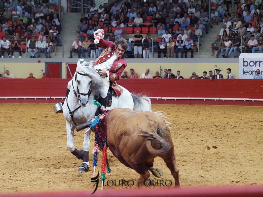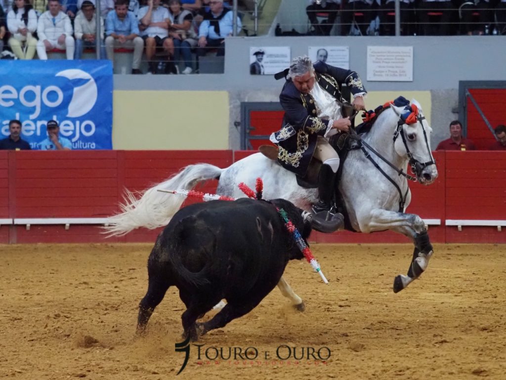 A cavalo, claro está, actuaram João Moura, Marco José, Gilberto Filipe, Manuel Telles Bastos, João Salgueiro da Costa e António Prates e comecemos, por “aquele” que este ano decidiu por ponto final à sua carreira de trinta anos enquanto cavaleiro profissional.